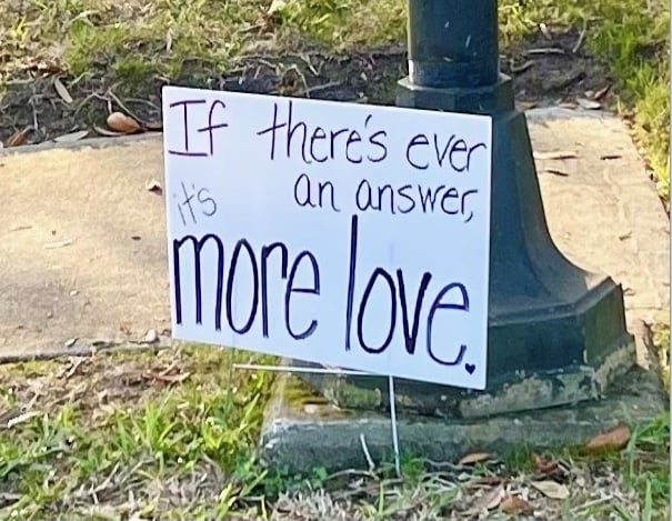 Even just this morning, while driving around the island, my mind was swirling through many thoughts for this article, sensing I had too many words and not enough organization. As I drove past the Shops of Demere, it suddenly seemed like God just stopped all my thoughts about what to write and gave me a very clear sign. Literally a sign. I found my eyes drawn to a small, hand-made poster propped up on the side of the road, with this very powerful and conclusive message: