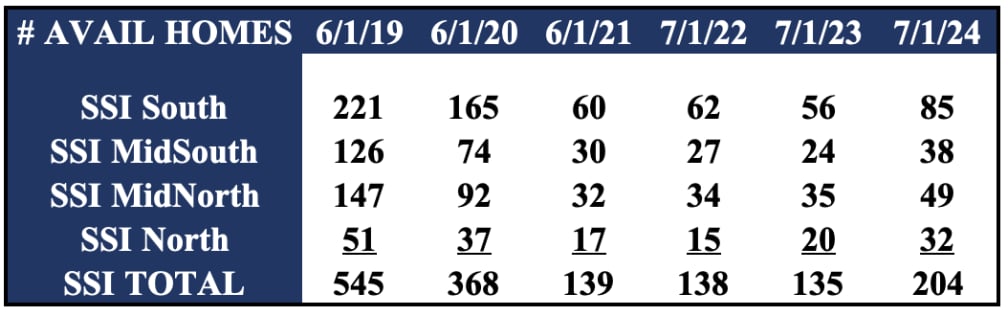This year, we have seen a modest increase in inventory on St. Simons. However, the scarcity of available homes and new home construction limit transaction volume. Even though we have seen some inventory growth, the supply of available homes remains low. Would-be Sellers are not willing to give up the low-interest financing they currently have, and they don't like the lack of purchase options to move to. This is causing many would-be sellers to sit tight.